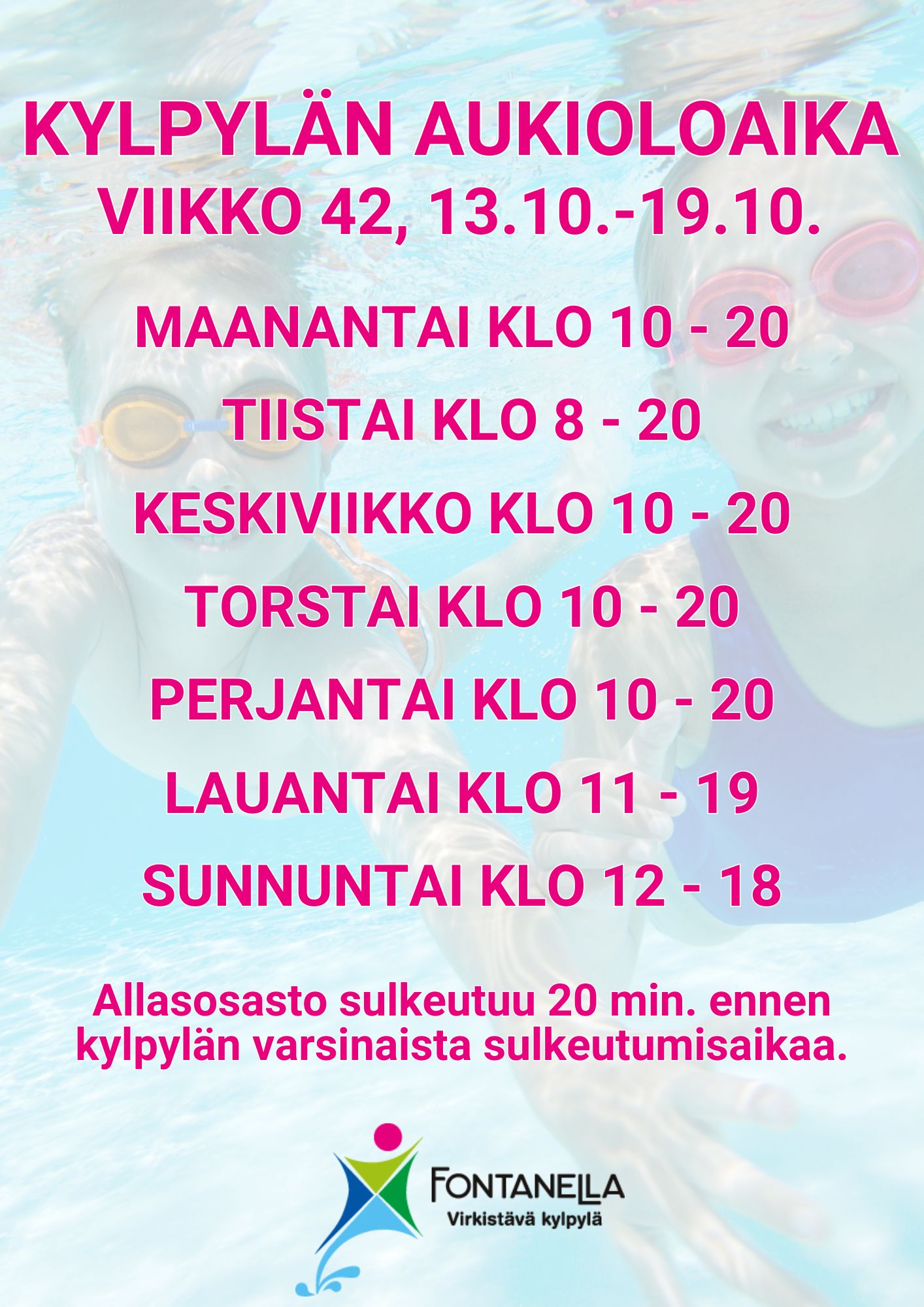 Syyslomaviikon (vko 42, 13.10.-19.10.) aukioloajat löydät täältä.