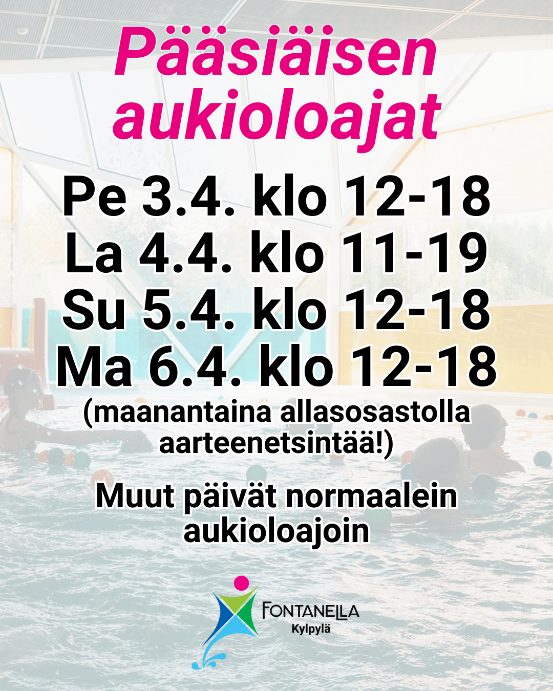 Allasosasto sulkeutuu 20 min. ennen kylpylän varsinaista sulkeutumisaikaa.