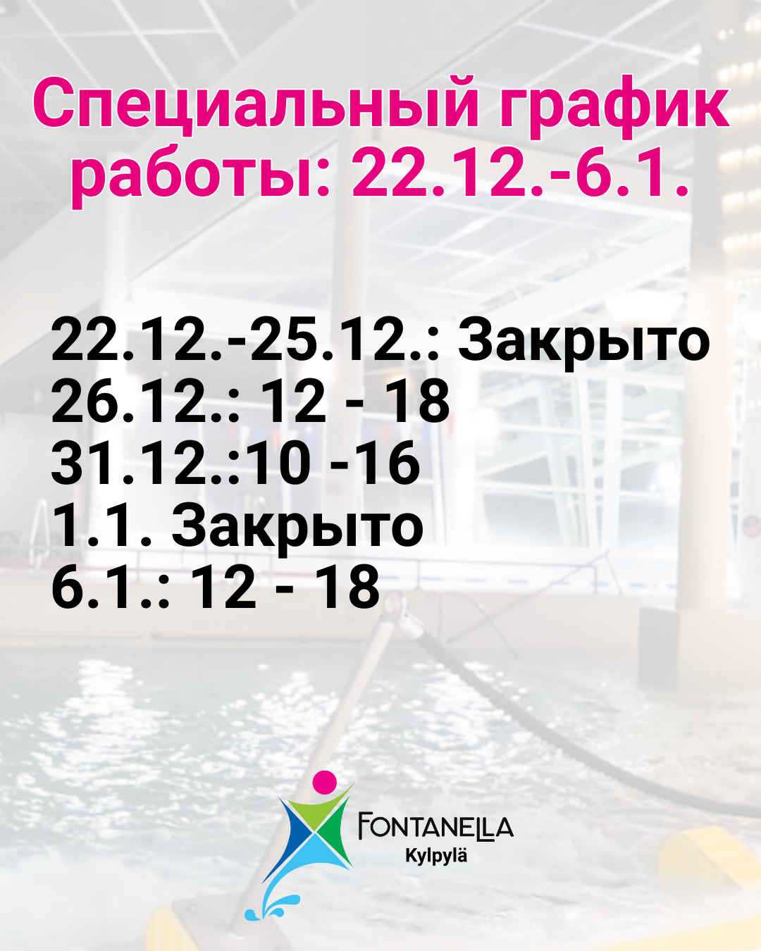 Специальный график работы: 22.12.-6.1.